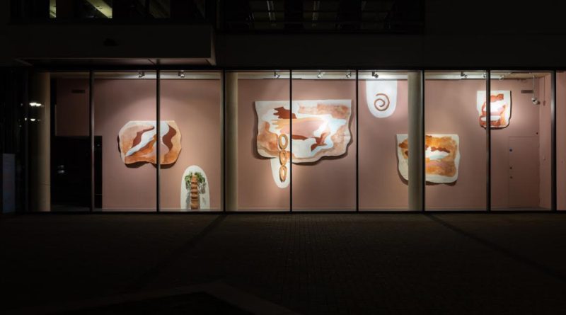Adicionalmente, la artista presenta cerámicas que interactúan con pinturas de gran formato de Jaime Gili, que forman un mural visible desde la plaza exterior de la galería. Esta obra referencia el mapa geológico de William Smith de 1815, que denota una visión fundacional pero extractivista del paisaje británico.