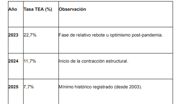 El declive de la Actividad Emprendedora Temprana (TEA)