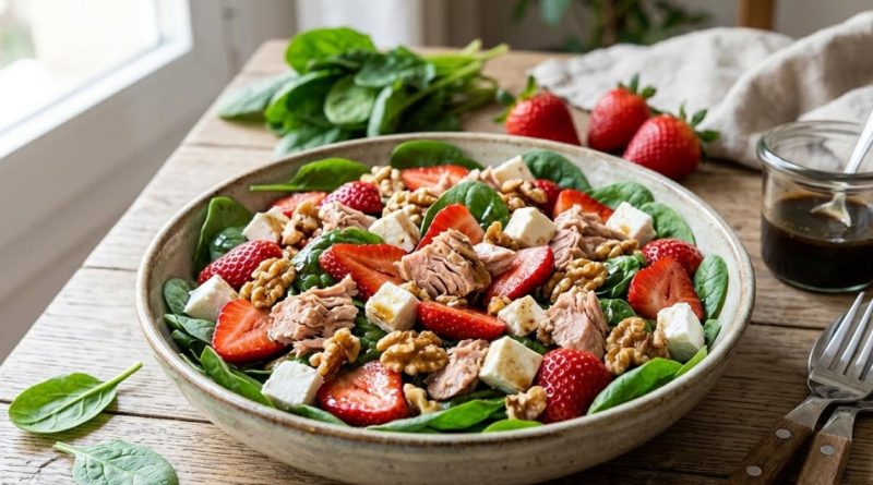 Ensalada de atún, fresas y espinacas